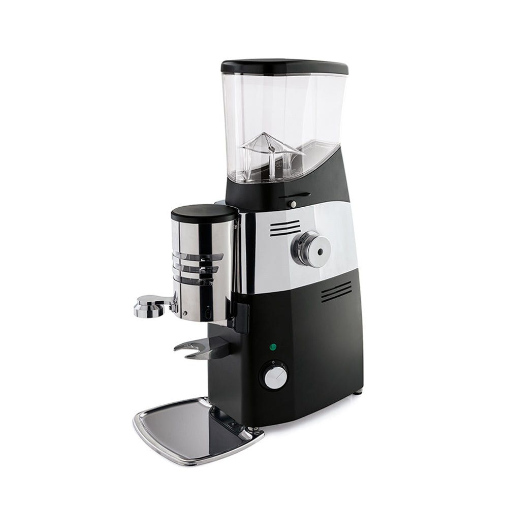 The Kold S Automatic is a high performance espresso grinder in the Mazzer S line. The Kold S is the fastest grinder in the Mazzer S line, along with the Robur S (1s/6g @60Hz). The construction of the Kold S is designed to protect the coffee against exposure to heat by utilising a belt-driven transmission, low RPM motor and a double cooling system. The automatic version features a doser chamber that automatically grinds every 12 doses and stops when full.