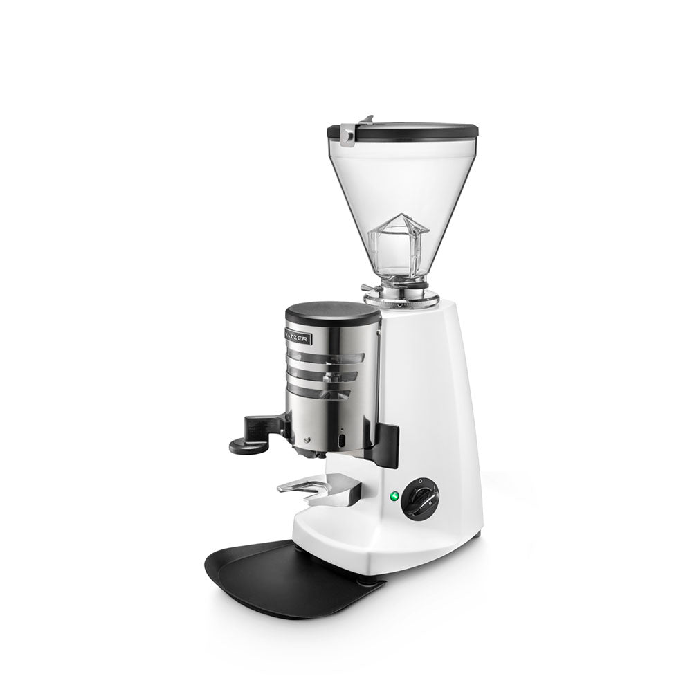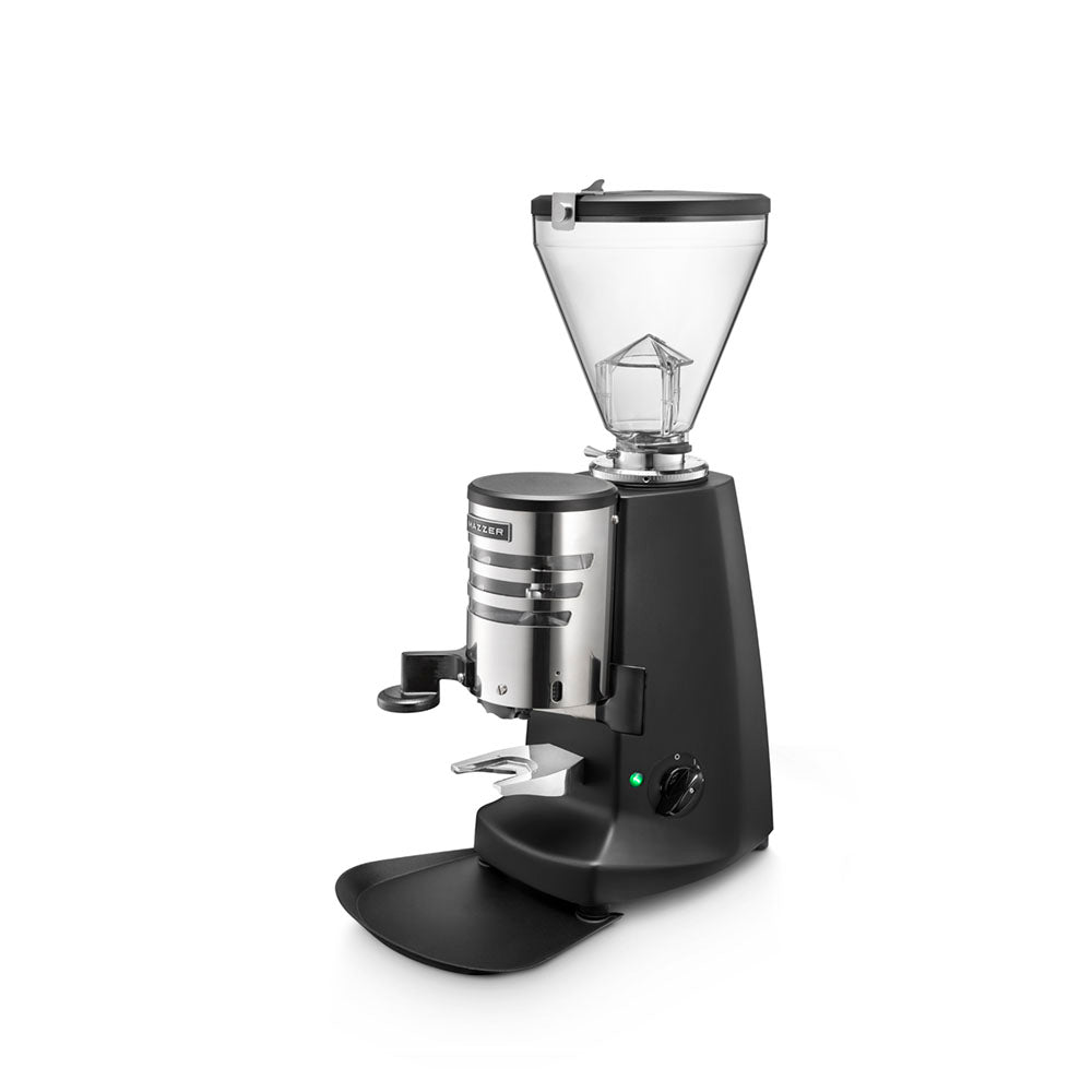 The Super Jolly V Up Automatic is an entry level commercial grinder from the Mazzer V line designed for small to medium sized cafés. The automatic version features a doser chamber that automatically grinds every 12 doses and stops when full.